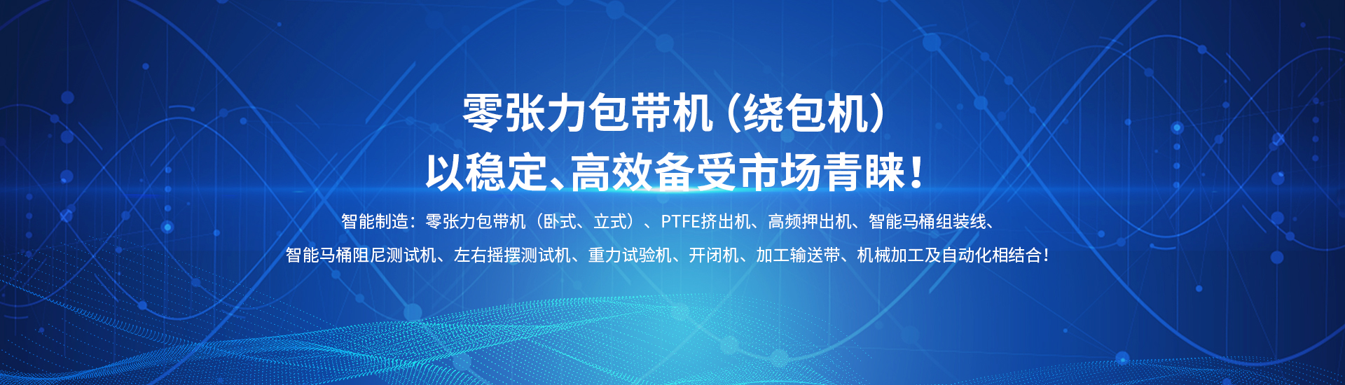 主要產(chǎn)品:押出機(jī)、包帶機(jī)、PTFE擠出機(jī)、智能電子坐便器組裝線、電子坐便器老化試驗臺、阻尼耐久試驗機(jī)…